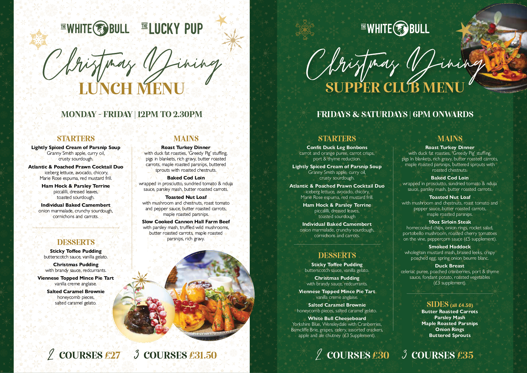 Our Christmas menus are being served in our two onsite restaurants The Lucky Pup and the White Bull.