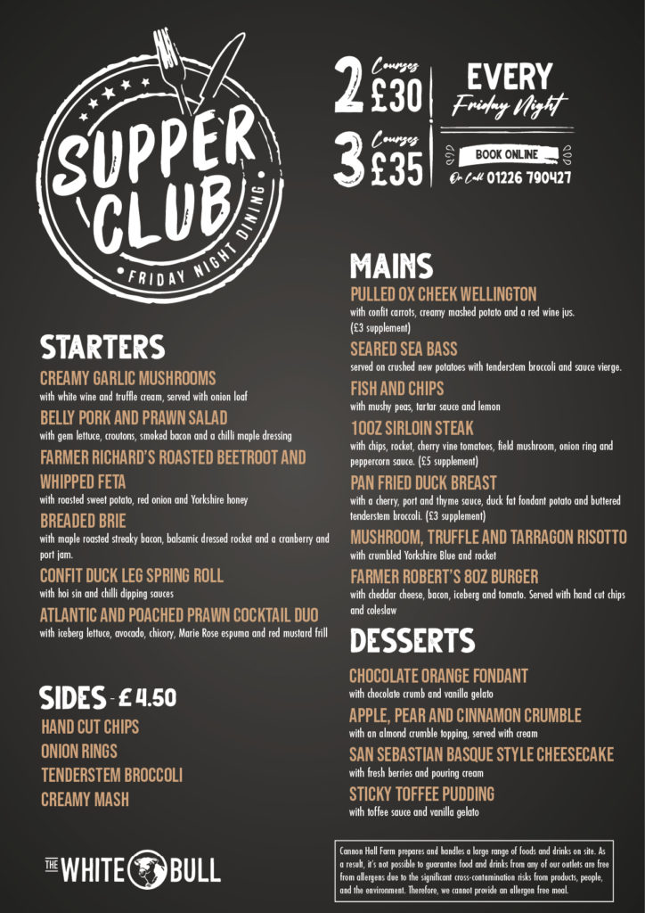 This is our evening menu only available on Supper Club Fridays and only for those with a valid booking. No walk-ins are permitted.