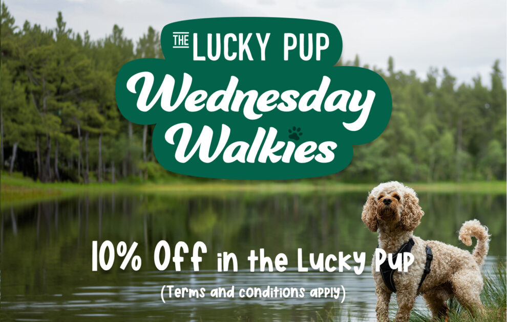 The Lucky Pup Wednesday Walkies is a loyalty programme customers can sign up for at Lucky Pup or online. Meeting every Wednesday from 9am to 11am, members receive 10% off any purchase when they present their digital loyalty card email at checkout.